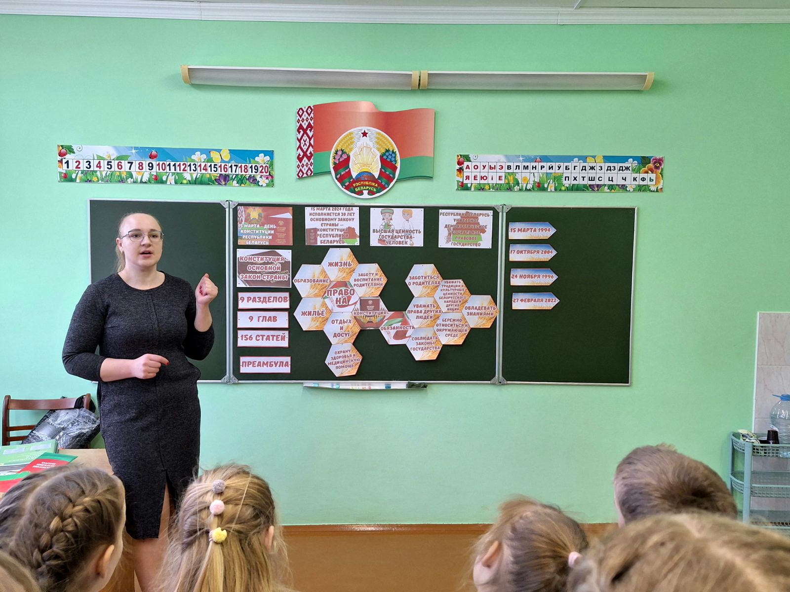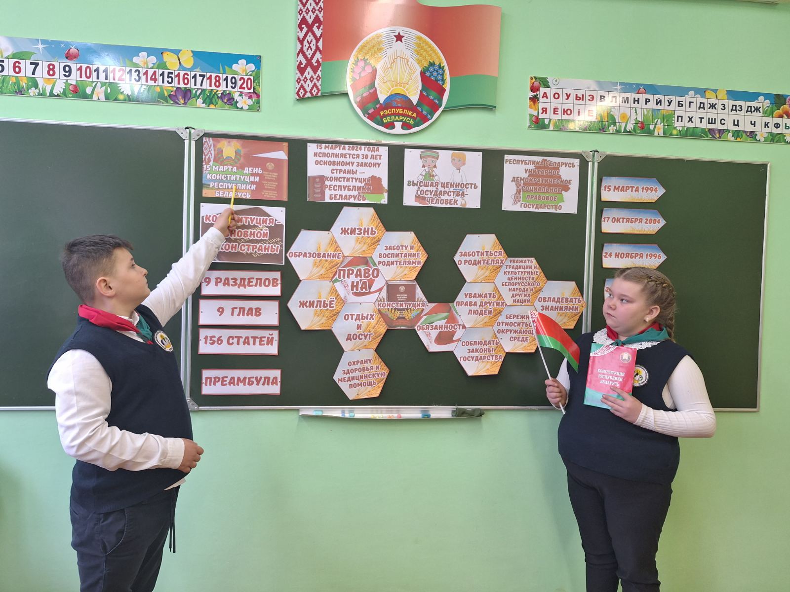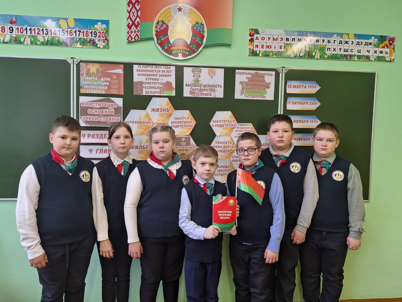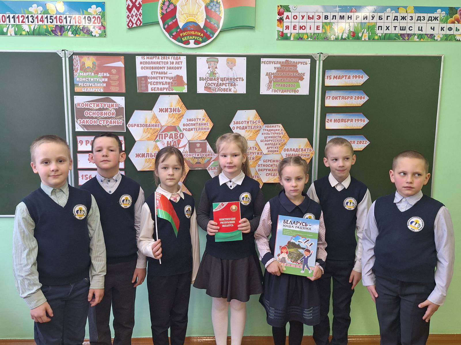С целью формирования у учащихся правовой культуры, активной гражданской позиции, понимания сущности и значения Конституции Республики Беларусь, готовности сознательно и активно выполнять гражданские обязанности, соблюдать и уважать законы своей страны 15 марта 2024 года для учащихся 1-4 классов прошел единый урок, посвященный Дню Конституции Республики Беларусь.
