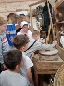 В рамках Дня «Национальные ремесла земли белорусской» ребята лагеря посетили отдел ремесел и традиционной культуры. Этот самобытный уголок национальной культуры оформлен в стиле белорусской хатки ХIХ века с использованием элементов народной культуры нашего региона. Детишки на мастер-классах по соломоплетению и гончарству смогли своими руками создать уникальные обрядовые предметы и сувениры на память.