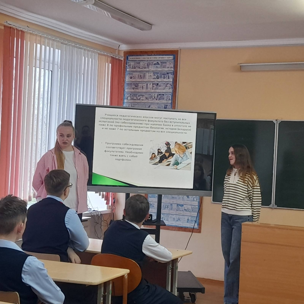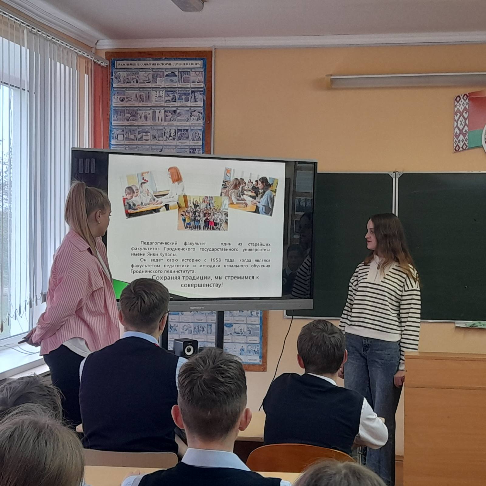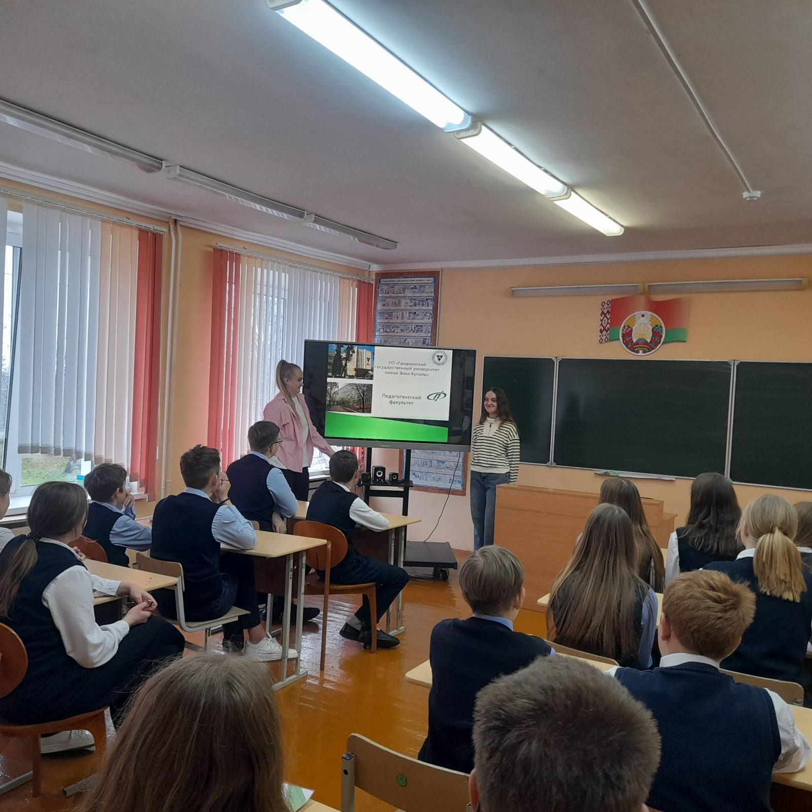 27 октября, 202528 октября, 2025 admin 27.10.2025 состоялась профориентационная встреча старшеклассников с выпускницами школы, студентами первого курса Гродненского государственного университета имени Янки Купалы Екатериной Пилецкой и Викторией Тяшкевич. Post navigation ← «Я. Моя семья. Моя Родина» Экскурсия в сельскую библиотеку аг. Мурованая Ошмянка →
