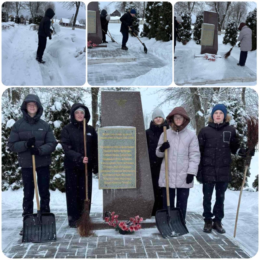 28 января, 202629 января, 2026 admin 28.01.2026г. учащиеся нашего учреждения приняли участие в акции «Сохраним память на века» акции «Сохраним память на века»и убрали снег возле памятника воинам-землякам, погибшим в годы Великой Отечественной войны. Post navigation ← Мероприятие «Рождество приходит к каждому» «Быть достойным гражданином Республики Беларусь — значит быть готовым в любую минуту встать на защиту Родины» →